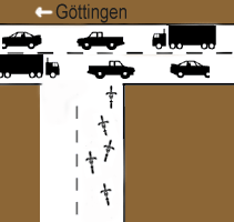 .., weil Der ganz vorne einfach nur stehen bleibt, muss eben der Zweite voraus fahren. Wieso der Rest dann aber rechts herum abbiegt, ist mir rätselhaft. Die wollten doch nach GÖ, oder?