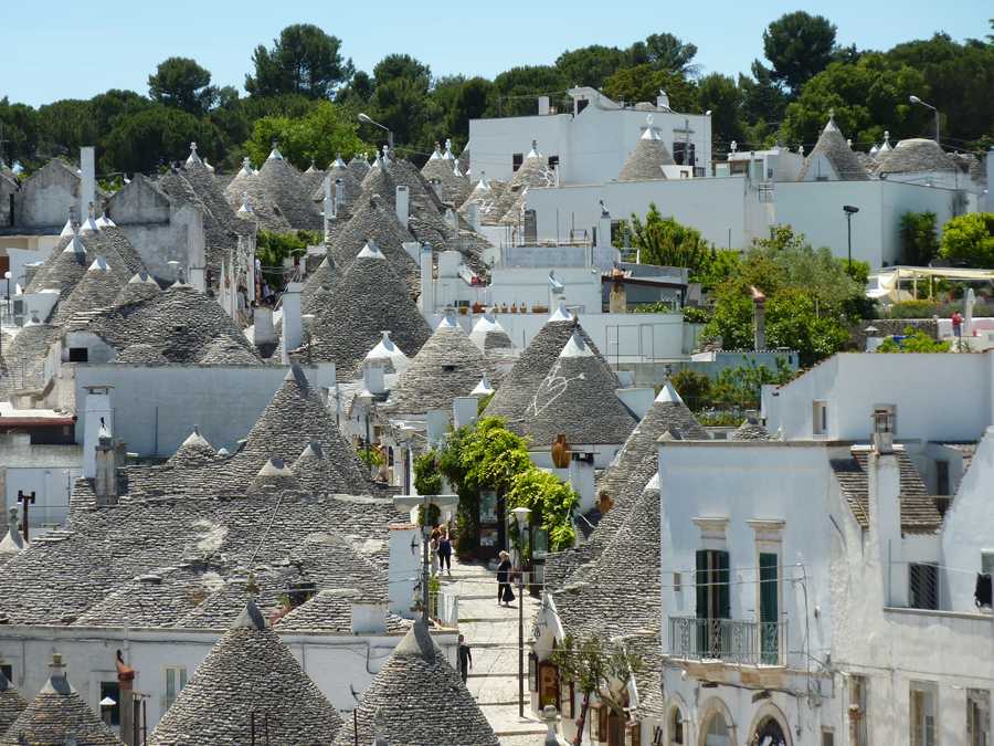 Matera, die alte Höhlenstadt, ist der Hammer: beschrieben in den 1930ern im Buch "Christus kam nur bis Eboli" als himmelschreiender Armutsslum – heute ist es ein lebendes Museum. Unglaublich, wie Menschen im Mezzogiorno, im armen Süden Italiens, einst gelebt haben. Das gilt auch für die Trulli, die einfachen Rundbauten. Zum Beispiel in Alberobello, das wir "Trullihausen" getauft haben. Zählt doch mal die Trullispitzen!