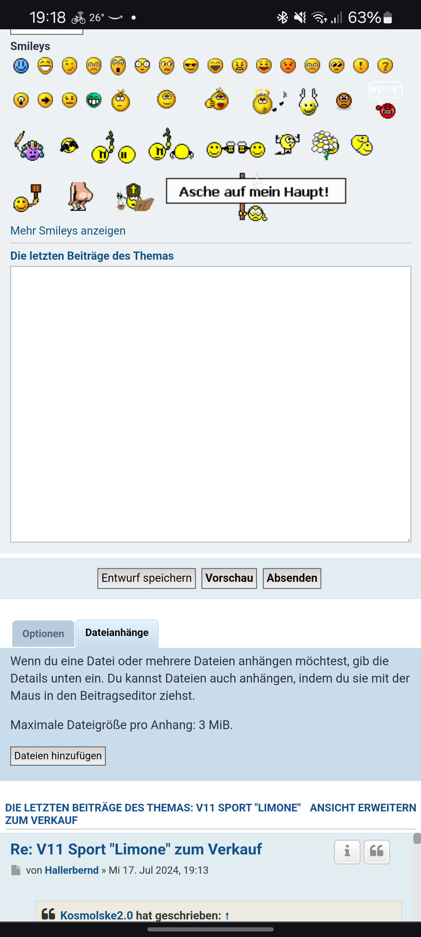 Beim Schreiben eines Beitrags unter "Absenden" im Reiter Dateianhänge"