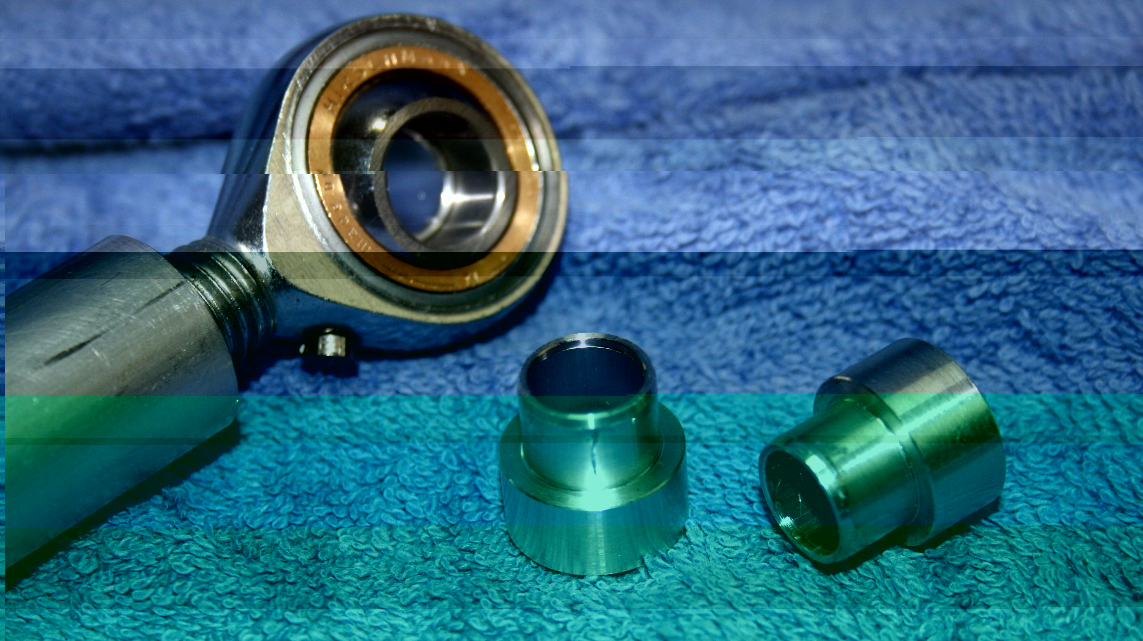 Die Gelenkköpfe sind mittels Beilagscheiben zentriert. Habe niemanden gefunden, der auf die Schnelle Distanzbuchsen drehen kann.