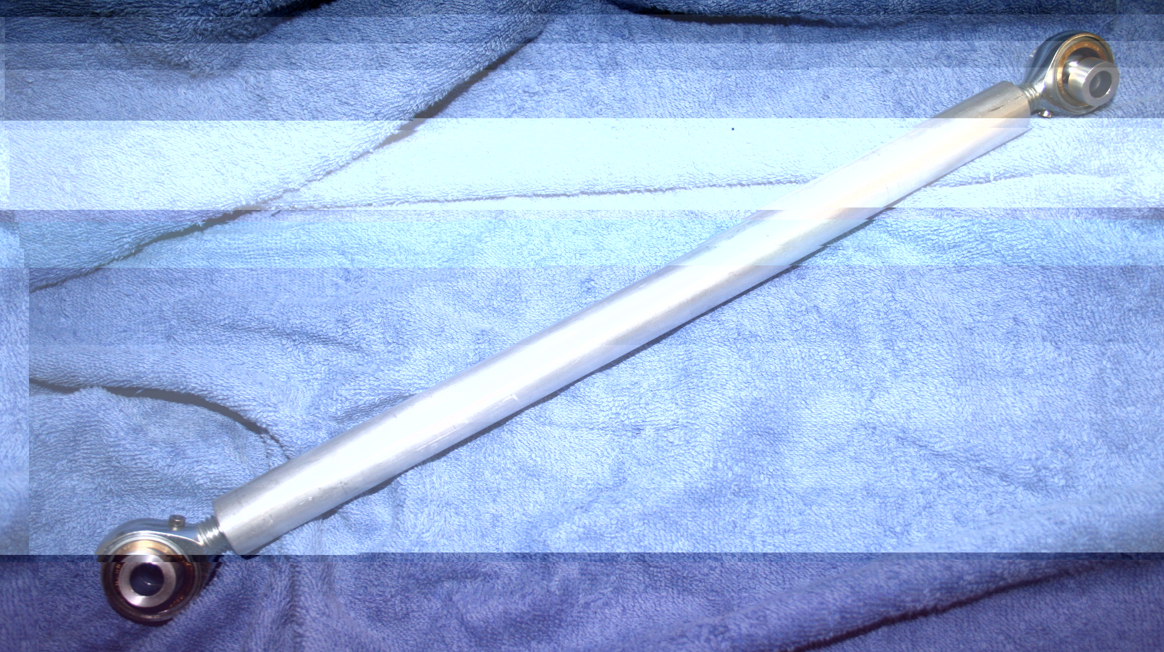 In der Mitte des Rohres kommt ne Bohrung 6mm. Das Loch ist Montagehilfe, um es mittels eines Schraubendrehers zu fixieren: gescheites contern gegen die Gelenkköpfe ist damit möglich.