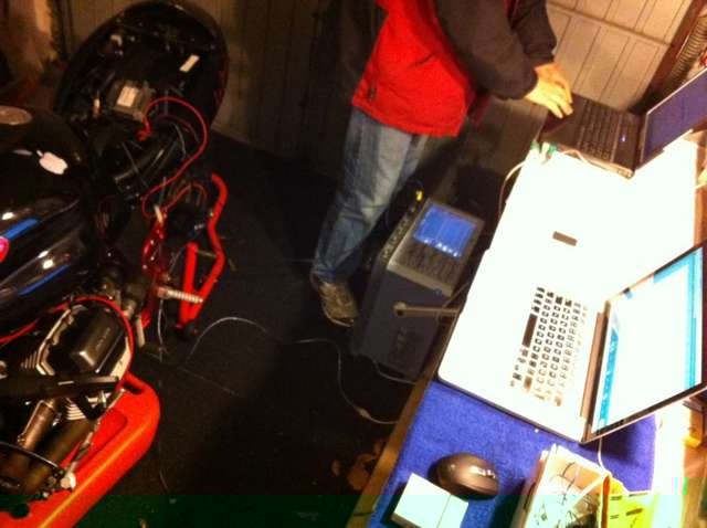 Den freundlichen Pruefer gefragt, ob ich den Ruessel in meine Dicke reinhaengen darf um CO zu testen. laptop ausgepackt, verkabelt und los gings:
