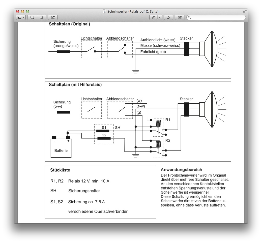 Abblendlicht an: Abblendlicht auf Masse 12,4 Volt, Fernlicht auf Masse 0 V.