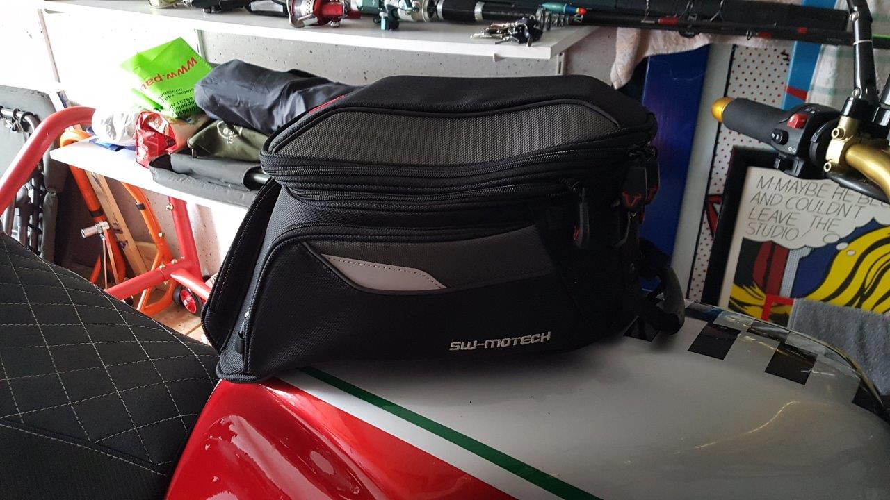 Ich habe mittlerweile einen kleinen und einen großen Rucksack und Halter auf allen Motorrädern: auf der Quota 1000, 1200 Sport und MV Agusta Brutale 800 kann ich beide Tankrucksäcke nutzen.