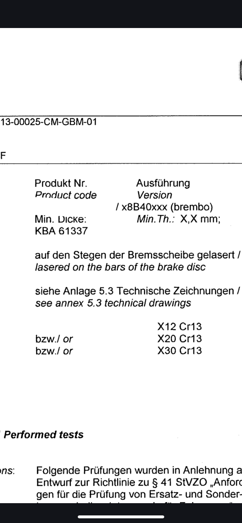 Hallo Stefan, ich hätte da noch eine ABE für Brembo. Ich bin nur gerade in Norwegen und kann die ABE nicht über meine Cloud und mein Handy hochladen. Wenn es Dich drängt, kannst Du mir über eine PM deine Mail Adresse schicken. Vielleicht bekomme ich es dann hin.