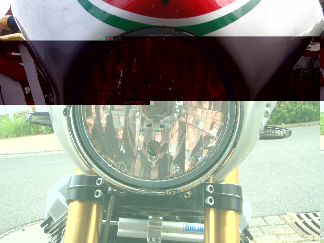 Der Spoiler ist von einer LM4 oder 5. Die Lackierung hat mich unendlich viel Nerven gekostet. Vor allem Lasurlack zu lackieren ist eine sehr undankbare Sache wie ich lernen mußte! Mal ein Sprühstoß Zuviel an einer Stelle und schon ist die dunkler als der Rest. Das wieder ausgleichen..und wieder...und wieder.....und zack - ist die Dose leer! Die Blinker sind die Highsider ARC. Nicht so schick wie die Kellermänner Bullett, aber dafür bezahlbar.