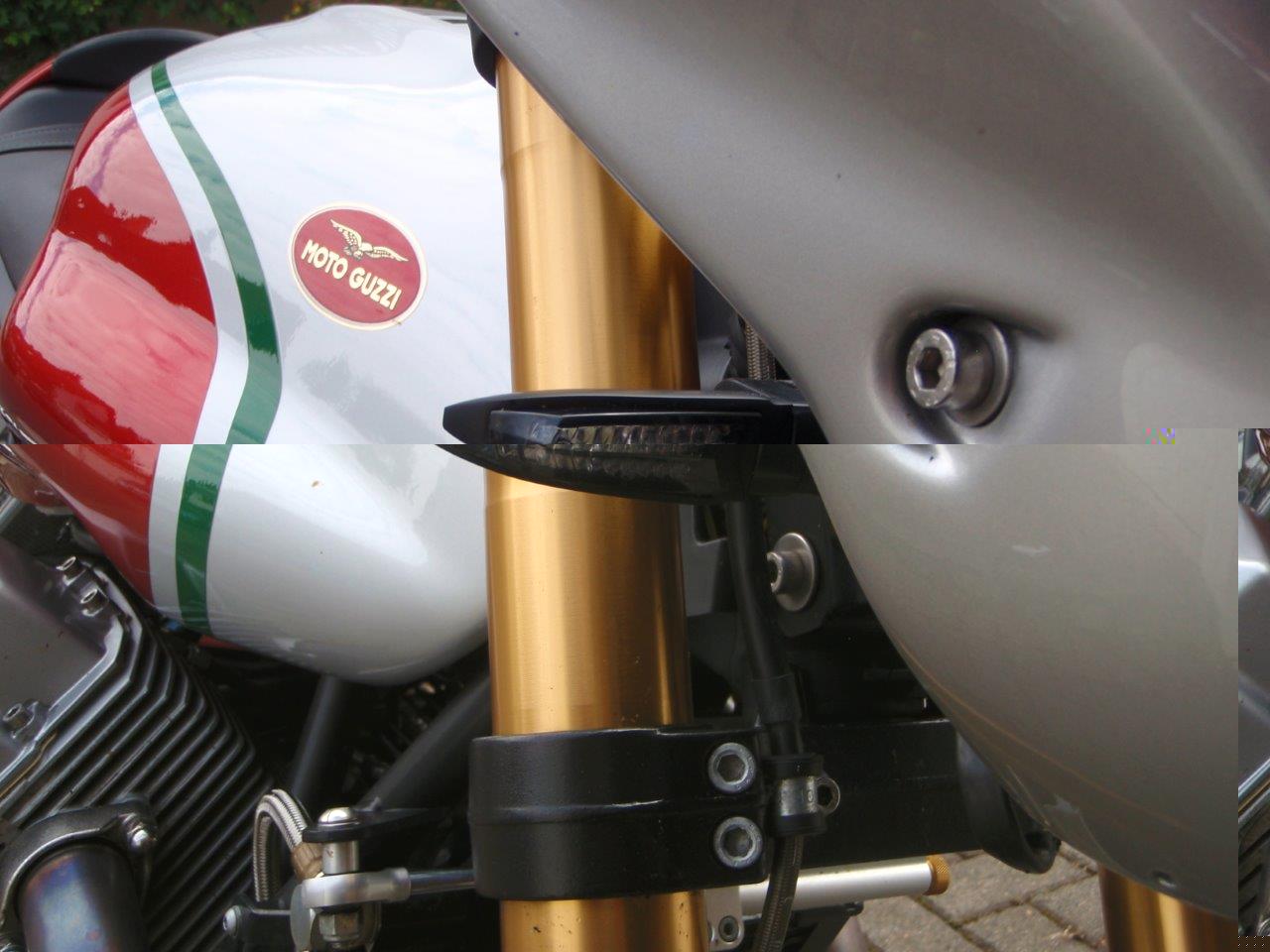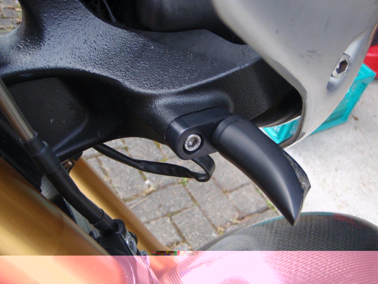 Besonders die Blinkerhalter gefallen mir sehr gut. Was hast Du für einen interessanten Fußbremshebelanschlag? Auch aus Eigenproduktion? Die Farbe des Bugspoilers ist klasse getroffen. :clap: