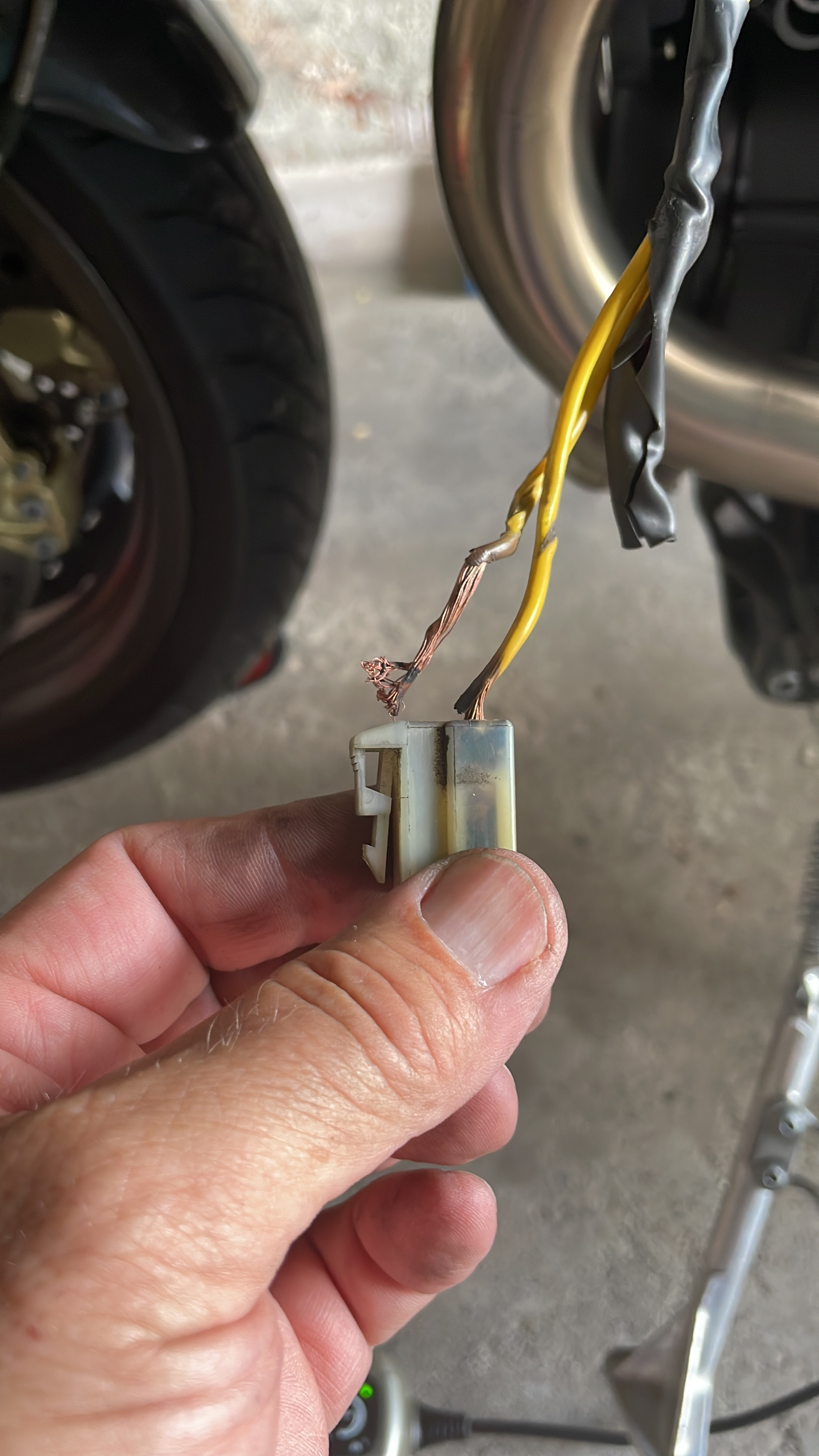Die Reparaturlösung von Guzzi ist eine Lüsterklemme.