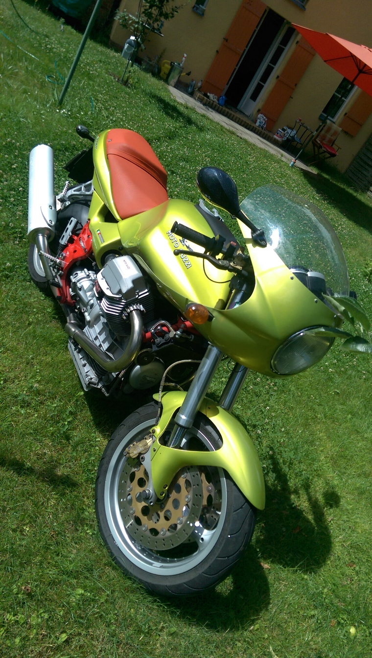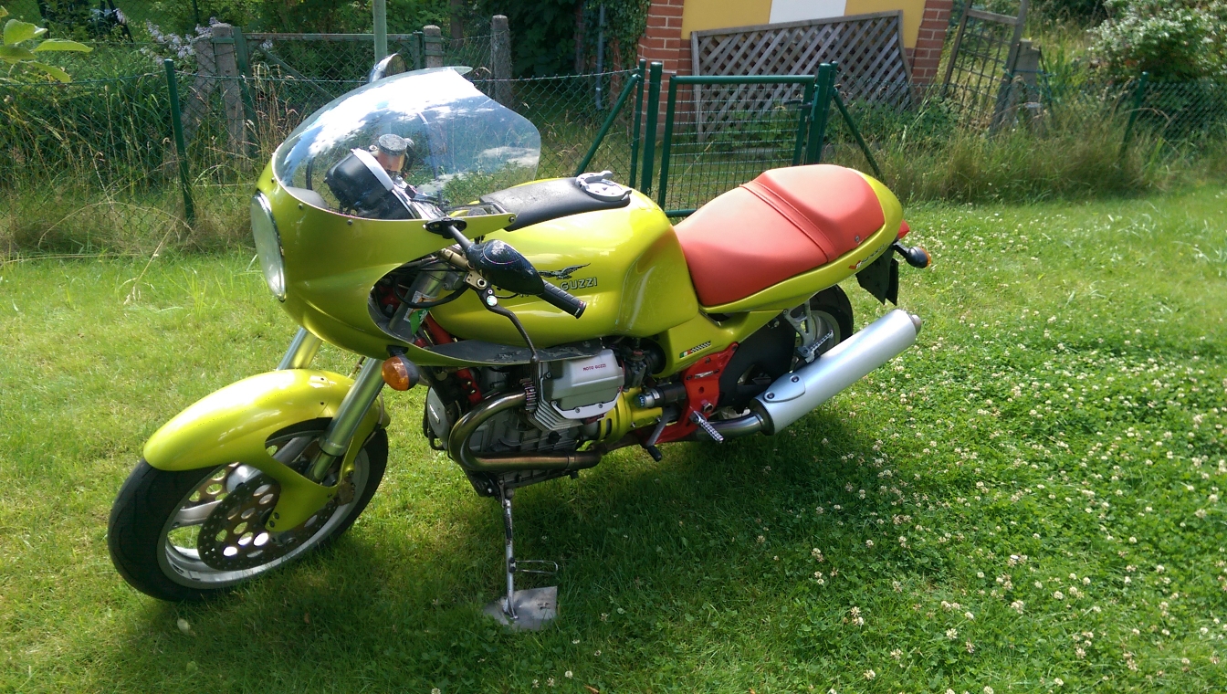 Deine Maschine ist mit ein wesentlicher optischer Grund warum ich mir meine Limone mit 36.000 km vor 5 Jahren zugelegt habe. Deine ist schon eine bemerkenswerte Erscheinung und hat mich damals beim Lesen im Forum richtig angefixt. "Einmal infiziert - immer erkrankt" - Wessen Spruch war das nochmal? Ich war schon drauf und dran mir Deine Abgüsse, die schwarzen Rohlinge Deiner Verkleidung zuzulegen als Du sie in den Kleinanzeigen angeboten hast. Lediglich das Gap zwischen Verkleidung und Kotflügel ist mir immer ein wenig zu groß gewesen. Für mich habe ich seit 3 Jahren eine schnieke ( bestechend schöne) Stucchi - Verkleidung gefunden - die olle Carbonverkleidung dann verkauft. Preislich ist Deine Dame schon sehr günstig. Ich habe für meine, mit BOS, C-Fender und Heizgriffe und C-Verkleidung und Ständer damals etwas über 5k bezahlt. ( Ich glaube Michael liest gerade mit und beömmelt sich gerade :lol: ) Etwas zu teuer aber sei's drum, ich wollte die Schöne einfach haben. Zuvor gab es ein anderes Angebot auch in Limo-Grün, 99er 61.000km, für 4.500€. Ich leider zu spät aber mit meiner Gina passt es nun. Seit dem ist schönes Klassikerbewegen mit akustischer Untermalung angesagt. Ich denke, die meisten Betrachter warten nach der Flut von Preisnachlässe darauf, dass Du irgendwann noch Geld dazugibst. Wie viel altes Guzzi-Geraffel aus den End-70ern und Anfang 80er wird für teures Geld