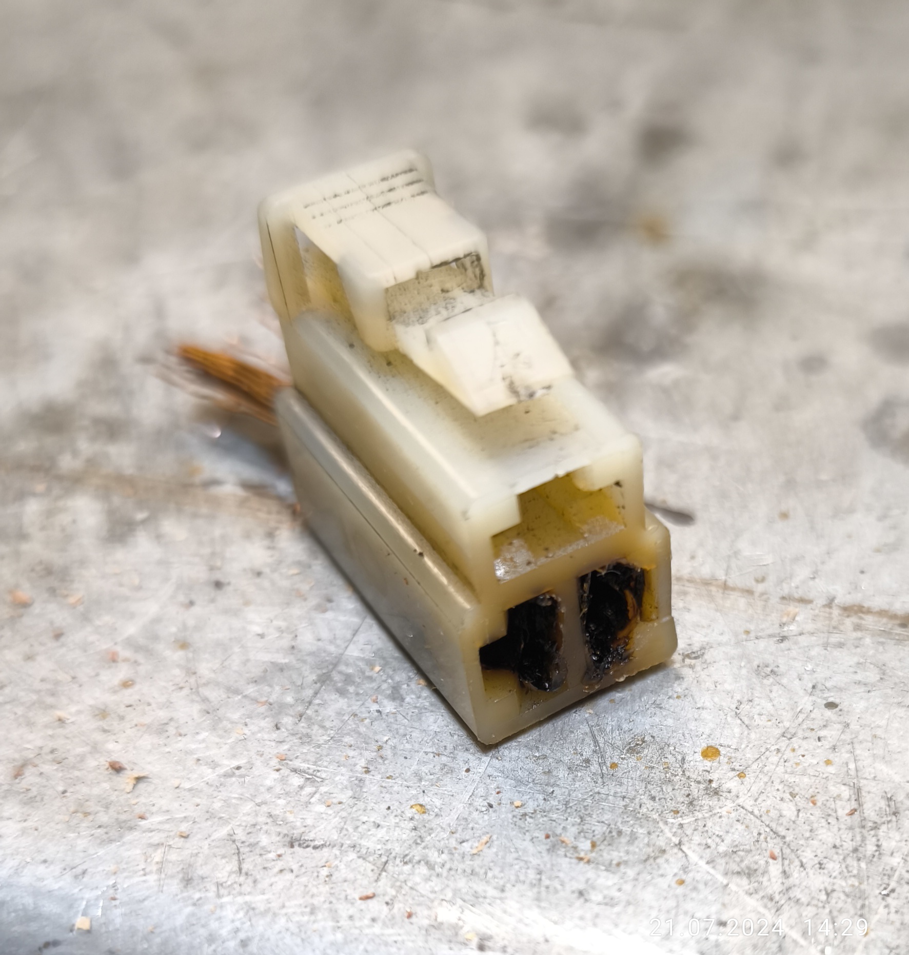 Habe neue Flachsteckhülsen verkrimpt. Das Gehäuse sieht halt jetzt scheisse aus. Mal sehen, wie lange ich mit dem Provisorium leben mag....oder kann.