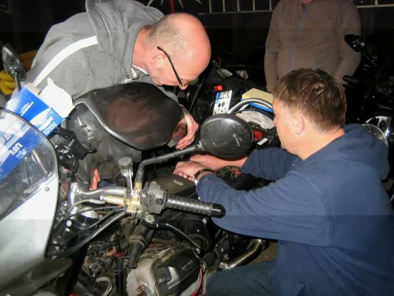 Das waren nur routinemäßige Arbeiten. Teile inspizieren, auf Spiel prüfen, wenn notwendig fetten. Danach ging's auf die Tagestour.
