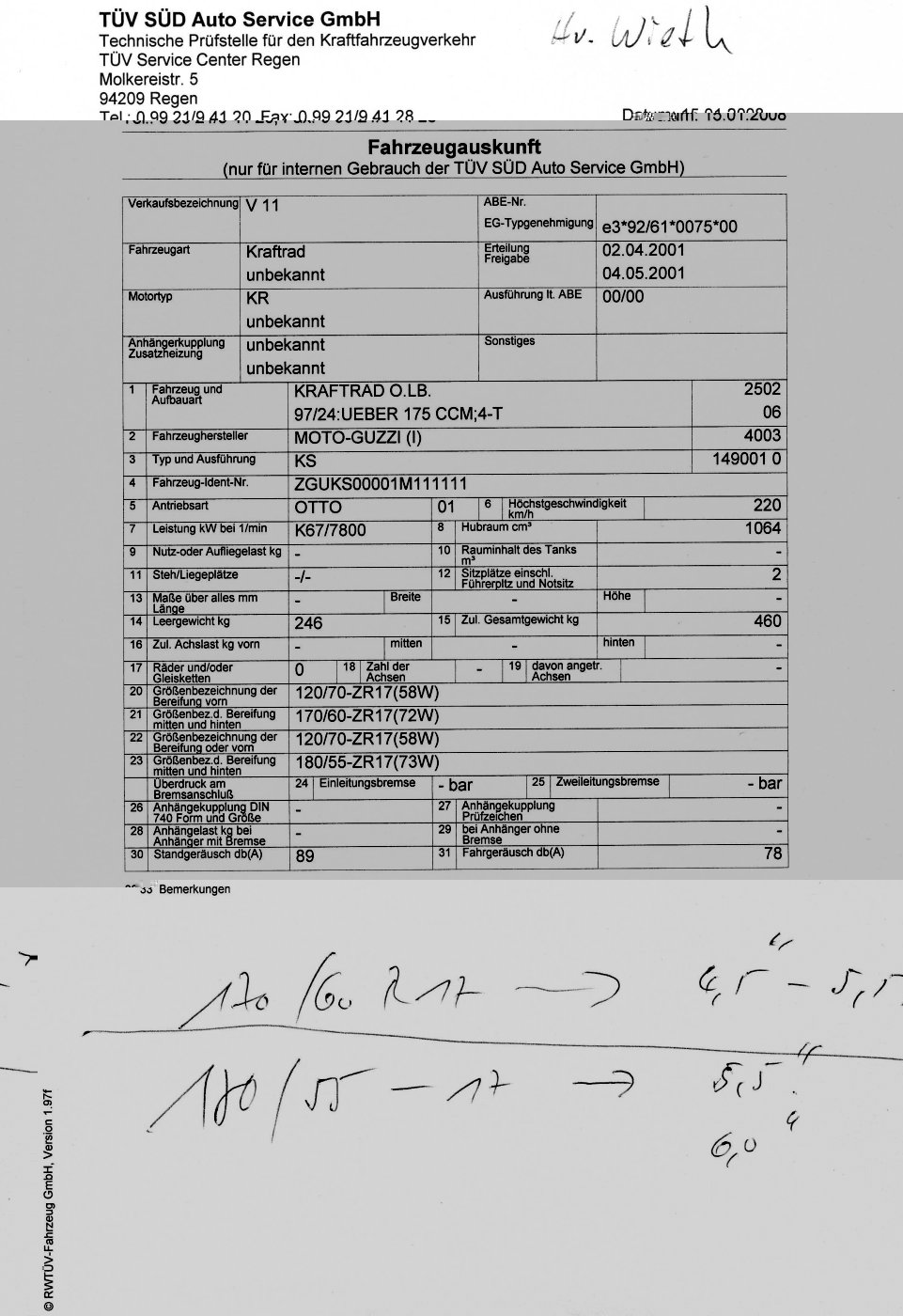 Mitte Januar 2008 habe ich mich um eine Klärung des Problems bemüht. Ich habe bei der örtlichen Polizeidienststelle vorgesprochen und mich mit einem Prüfingenieur unserer TÜV-Außenstelle in Verbindung gesetzt. Einhellige Aussage, eine Fabrikatsbindung gibt es nicht mehr. Entspricht ein Reifen der vorgegebenen Spezifikation, ist das Reifenfabrikat ohne Belang. Der Ingenieur des TÜV gab mir zwei Ausdrucke aus seiner Datenbank mit, in denen diese Aussage belegt wurde. Die Blätter durfte ich ausdrücklich ins Forum stellen, was ich mit einem begleitenden Artikel auch getan habe.