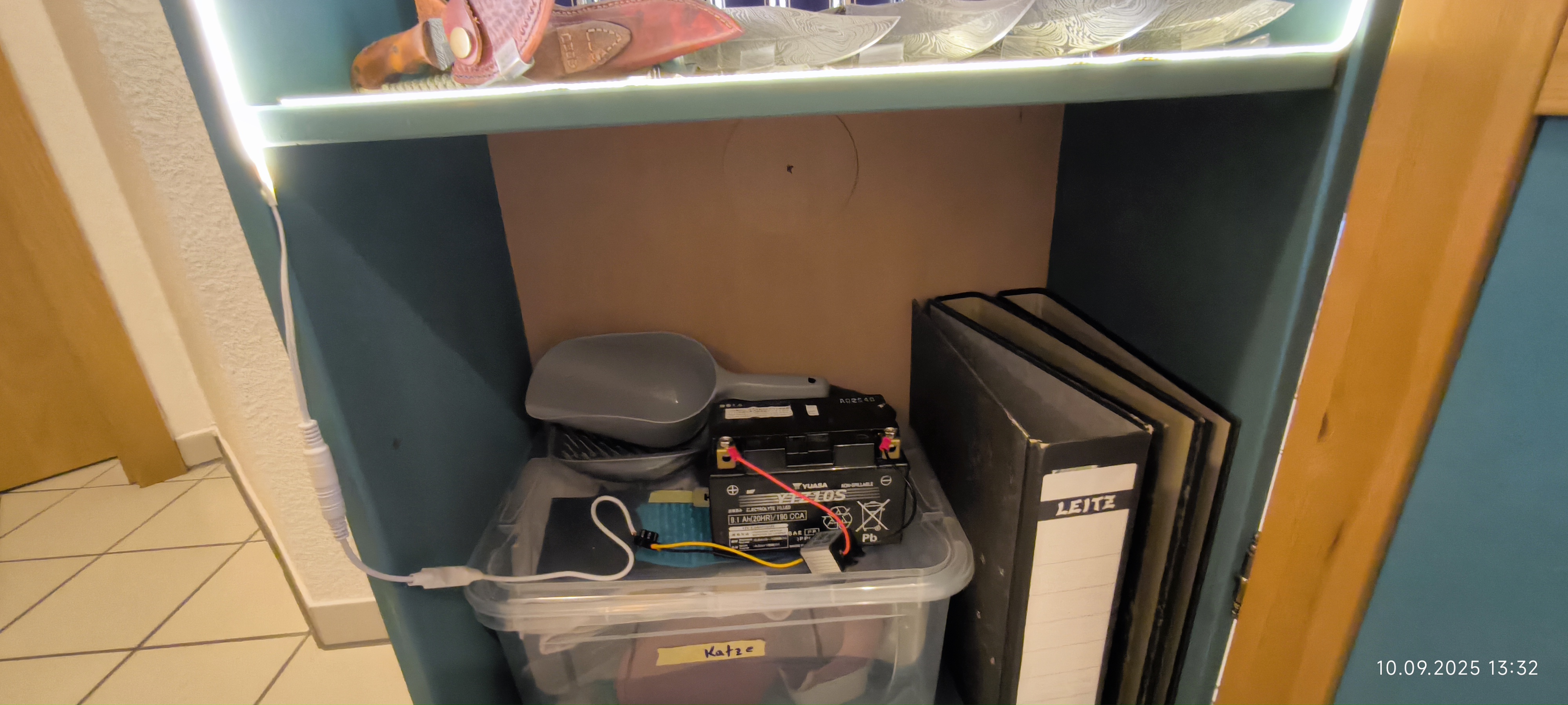 Und für die Scheiss Yuasa aus der Triumph, die darf jetzt meine Vitrine beleuchten. Da kommt es nicht so auf die inneren Werte für an ...