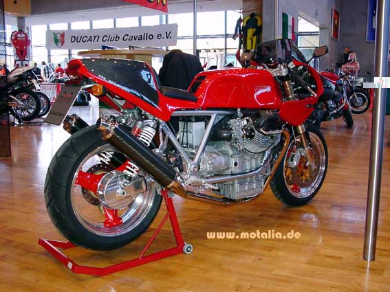 V11 Café Sport mit BOS-Auspuff und Stucci-Sammler, die mit den roten Ventil- und Seitendeckel · Grüße aus dem Taunus