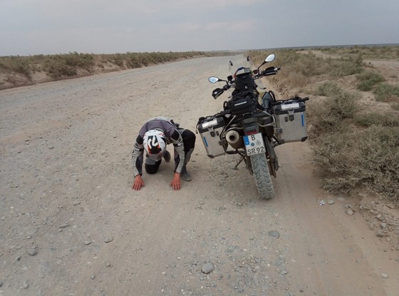 Irgendwie möchte inzwischen jeder nur noch weg von der flachen ebenen Wüste und Steppe und wieder einmal Kurven und Berge fahren, was wir ab übermorgen in Kirgisien auch wieder werden.