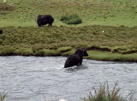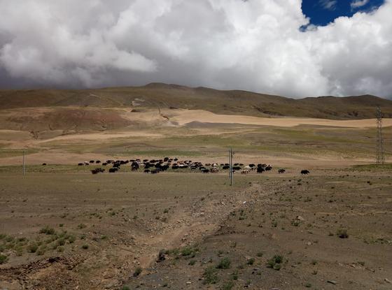 Von Zeit zu Zeit sieht man einige Yaks, Wildesel, Antilopen oder kreisende Geier.