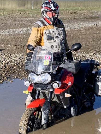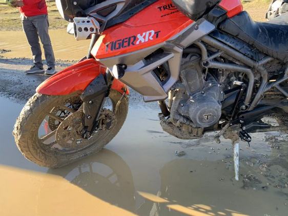 Ich kann beim Abschleppen die Tiger nicht mehr aufrecht halten und falle mit dem Motorrad ins Wasser.