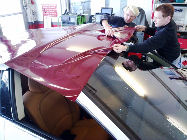 der Andreas macht beruflich Folienbeschriftungen und der hat auf dem Treffen erzählt, dass das Heck der V11 wegen der Rundungen extrem schwierig zu folieren sei und das nur ein apsoluter Spezialist ordentlich hin bekommt. Als Anfänger ist dann das sicherlich ein gutes Übungsobjekt um irgendwann