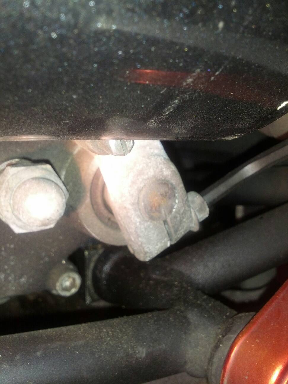 Zu Hause hab ich dann alles bereit gelegt zur Operation Federwechsel. Anlasser weg und da hab ich nicht schlecht gestaunt. Die Verbindungsschraube Schaltwelle-Schalthebel war nicht mehr vorhanden. Die Reparatur war dann null-komma-nix erledigt und ich hab nun eine Ersatzschraube dabei. Man kommt aber trotzdem nur hin, wenn der Anlasser weg ist....