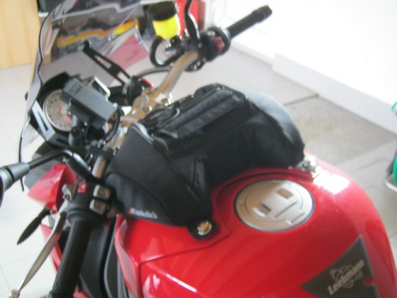 Es dürfte kein Problem für einen Sattler oder Schuster sein eine entsprechende Grundplatte für die V11 zu machen, damit der Tankrucksack auch ohne die Schrauben am Tank montiert werden kann.