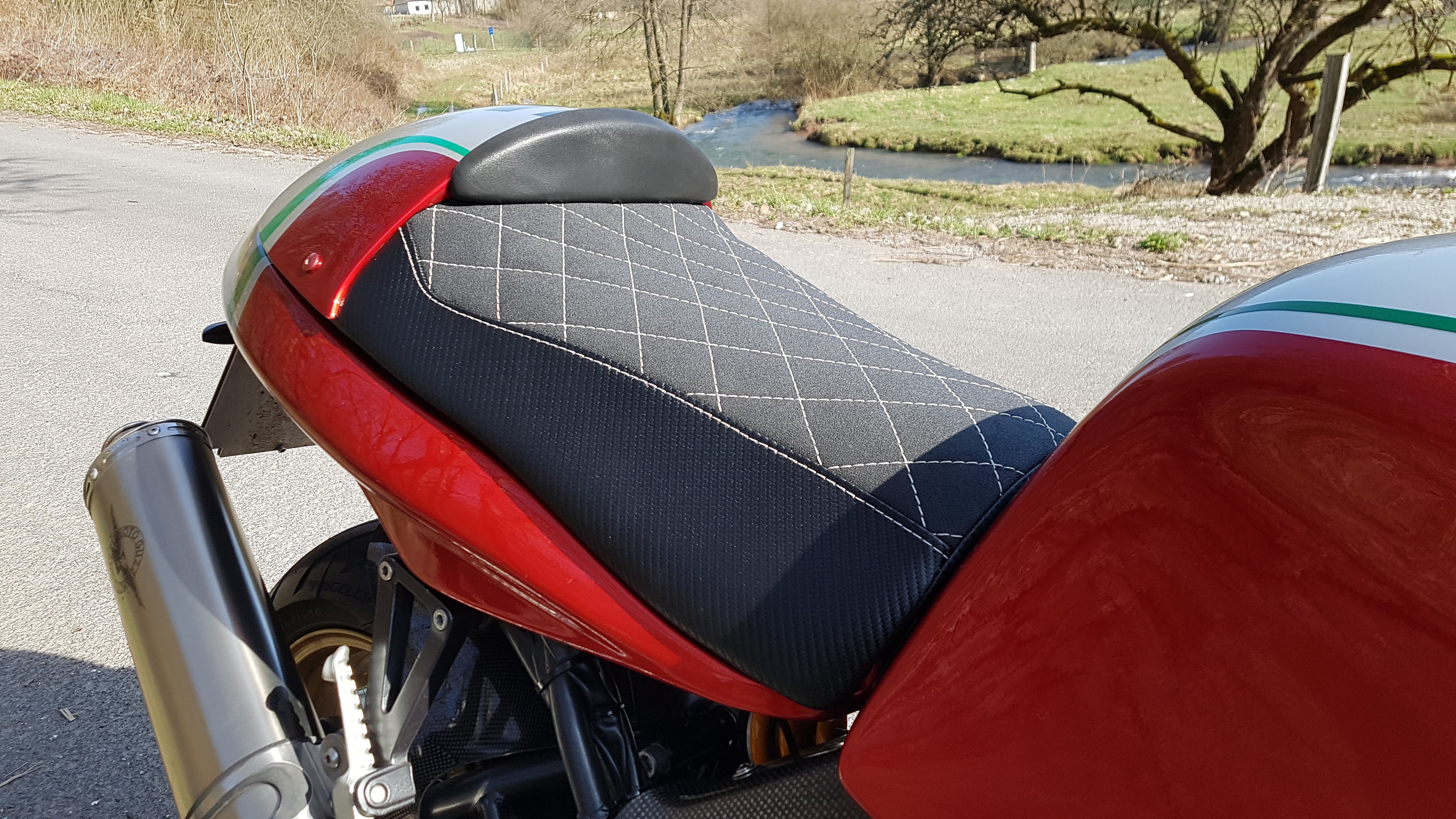 Die Sitzbank meiner Rocket3 hab ich vergangenes Jahr sportlicher und höher polstern lassen - dann mit Ducati Bezug drüber. Das hat mich das Doppelte gekostet, war´s aber wert!