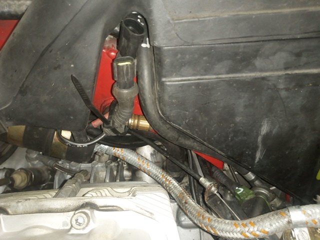Hab` jetzt erstmal den Benzinschlauch mit Kabelbindern hochgebunden...ich denke, ich werde in absehbarer Zeit eh noch ein paarmal dort zu tun haben und dann wird das ordentlich gemacht!!